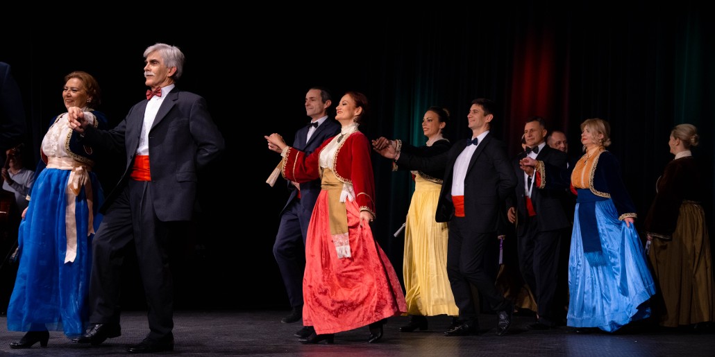 Препуна сала уживала је у раскоши српског фолклора, док су се на сцени смењивале кореографије које су представиле лепоту и разноликост наше традиције. Ансамбли оба друштва извели су најлепше игре из Србије и региона, уз пратњу изванредног народног оркестра и певачких група.